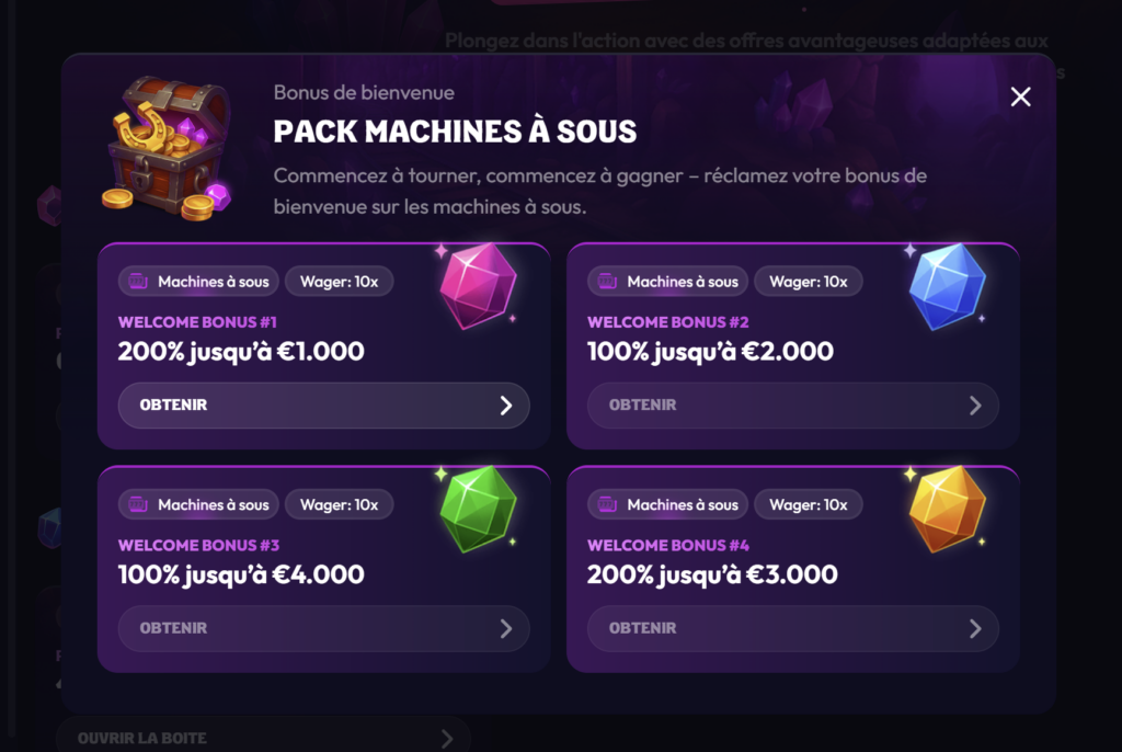 - 🎁 Bonus de bienvenue : 600 % jusqu’à 10 000 € sur les machines à sous